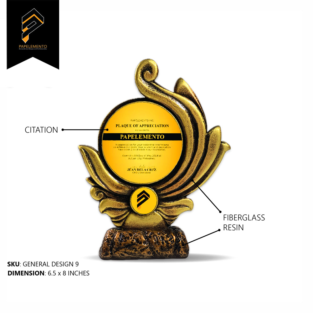 Whether it's for corporate milestones, academic excellence, or personal achievements, our bespoke plaque design celebrates individuals in a style that exudes grace and distinction. Elevate your recognition game with Papelemento’s General Design Award series 2024.