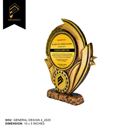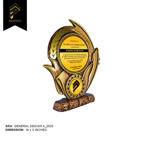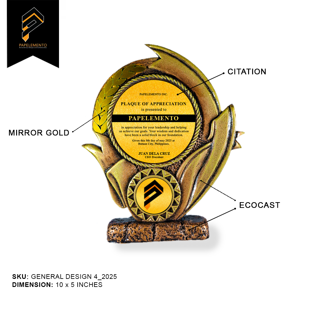 Gracefully sculpted to reflect a ribbon in motion, the General Design 4_2025 symbolizes recognition, triumph, and heartfelt appreciation. Made with EcoCast™, Papelemento’s eco-conscious material, and adorned with mirror gold elements, this plaque merges sustainability with sophistication.