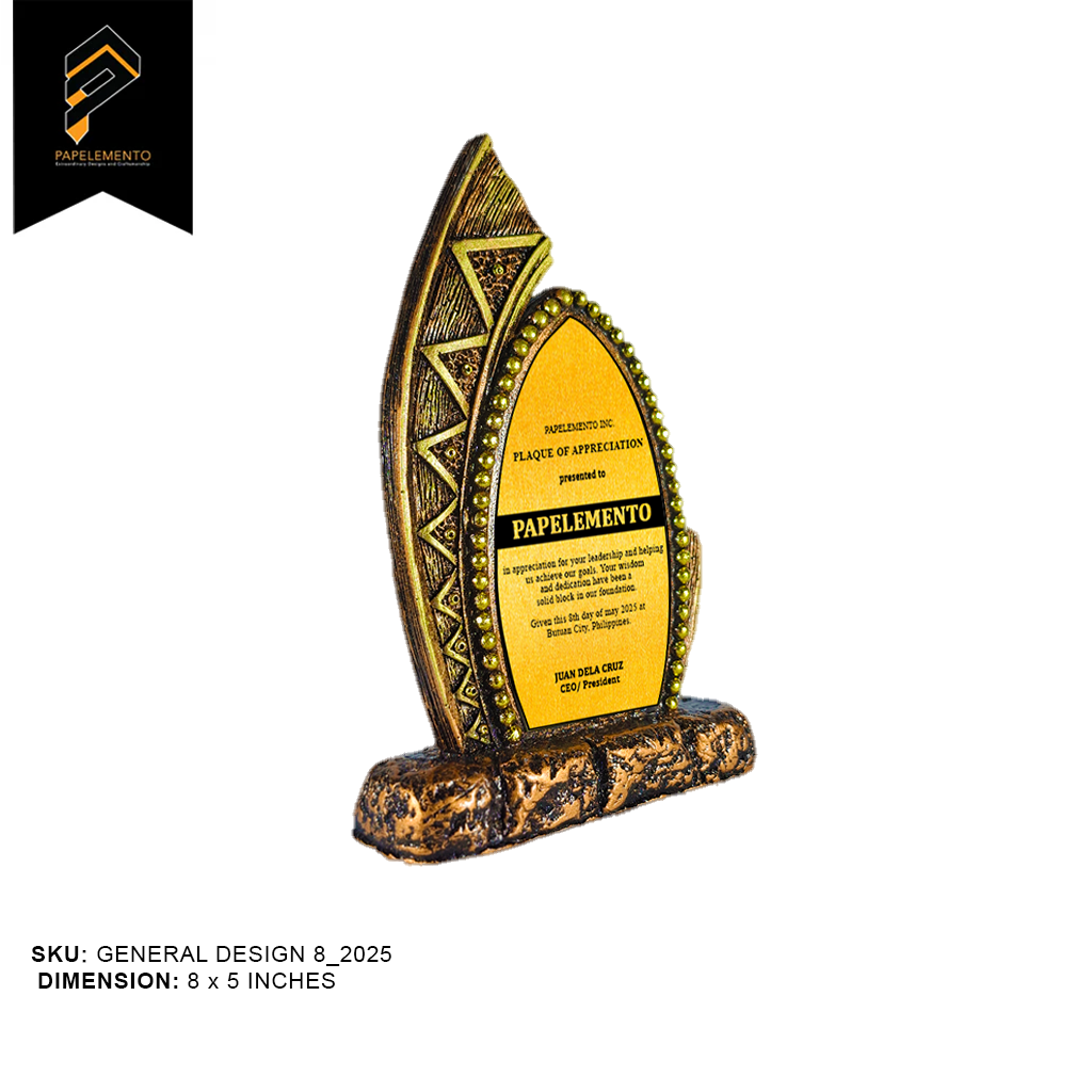 Rooted in tradition, shaped for distinction—the General Design 8_2025 is a uniquely crafted plaque that pays homage to indigenous artistry. Made from EcoCast™, Papelemento’s eco-conscious resin blend, its bold form mimics a tribal shield, symbolizing protection, strength, and honor.